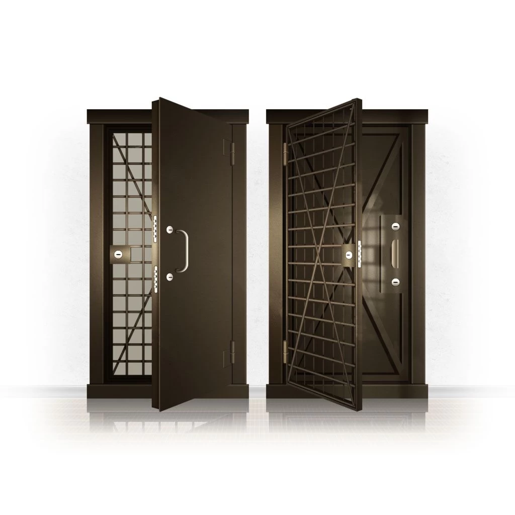 Металлические двери КХО и КХН представляют собой входные блоки, обладающие высоким уровнем взломостойкости и состоят из трех основных элементов: усиленного каркаса, сплошного металлического полотна и решетчатой двери. Дверной блок изготавливается из стального уголка 100*100 мм. Места крепления блока к стене цементируются и закрываются стальными наличниками шириной 40 мм. Крепеж заходит вглубь стены на 80 мм. В конструкции внешней створки монтируются ребра жесткости, для обшивки используется сталь толщиной не менее 3 мм. Внутренняя решетка изготавливается из прутка диаметром 16 мм. Размер ячеек решетки должен составлять не более 15 на 15 см. В точках пересечения прутья надежно приваривают друг к другу. В КХО и КХН необходимо поддерживать определенную температуру и влажность. Для этого внутреннее пространство глухой двери заполняется теплоизоляционным материалом, а по периметру двери приклеивается уплотнитель. Такие двери оборудуются замками с повышенным уровнем взломостойкости. Специализированные двери КХО и КХН в Армавире могут быть оснащены сигнализацией, в конструкции могут быть проушины для навесного замка и элементами для опечатывания. Если идет речь о двери в комнату хранения оружия, в створке оборудуется окно для выдачи оружия и спец. средств, которое накрывается стальной дверцей.