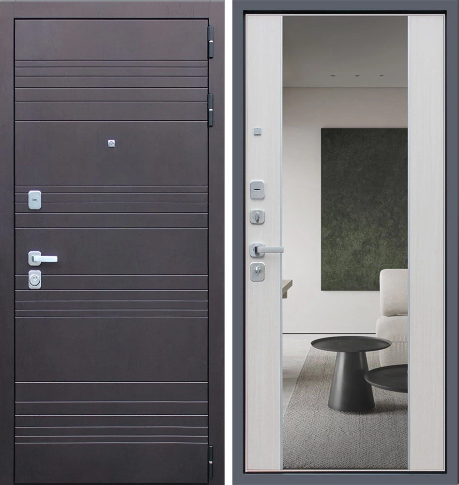 Надежная входная Дверь Дуэт с зеркалом премиум класса по цене 47 057 руб. Большая толщина стали защитит от проникновения в ваш дом, квартиру или коттедж. Используется очень качественная фурнитура: замки, цилиндры, ручки, защелки. Покрытие и отделка двери изготовлено под внимательным контролем производителя. Дверь имеет долгий срок службы и гарантию.