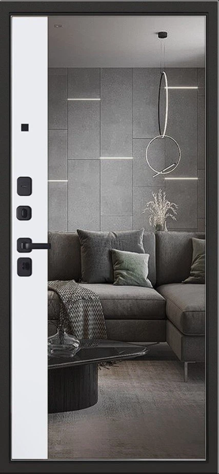 Надежная входная Дверь Scandi с зеркалом премиум класса по цене 45 107 руб. Большая толщина стали защитит от проникновения в ваш дом, квартиру или коттедж. Используется очень качественная фурнитура: замки, цилиндры, ручки, защелки. Покрытие и отделка двери изготовлено под внимательным контролем производителя. Дверь имеет долгий срок службы и гарантию.