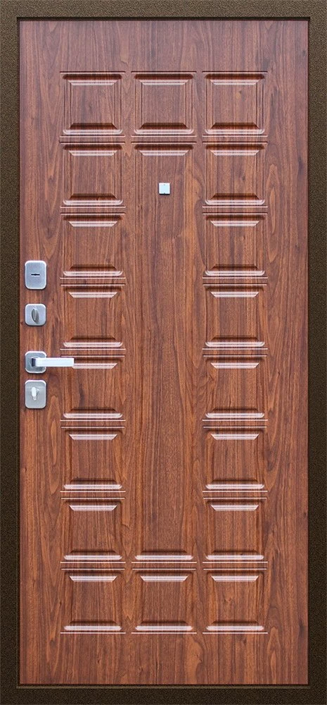 Надежная входная Дверь Спартак Орех темный премиум класса по цене 34 007 руб. Большая толщина стали защитит от проникновения в ваш дом, квартиру или коттедж. Используется очень качественная фурнитура: замки, цилиндры, ручки, защелки. Покрытие и отделка двери изготовлено под внимательным контролем производителя. Дверь имеет долгий срок службы и гарантию.