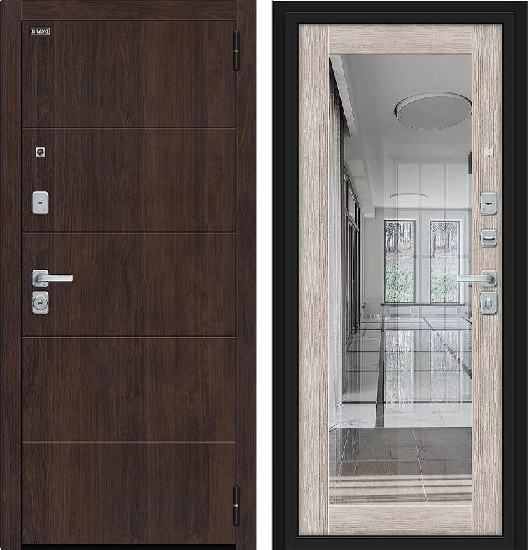 Надежная входная Дверь Браво Флэт/BChrome Almon/Cappuccino Melinga премиум класса по цене 42 507 руб. Большая толщина стали защитит от проникновения в ваш дом, квартиру или коттедж. Используется очень качественная фурнитура: замки, цилиндры, ручки, защелки. Покрытие и отделка двери изготовлено под внимательным контролем производителя. Дверь имеет долгий срок службы и гарантию.