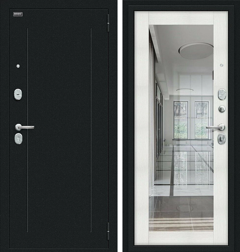 Надежная входная Входная дверь Флэш Букле черное/Bianco Veralinga BR4237 премиум класса по цене 33 289 руб. Большая толщина стали защитит от проникновения в ваш дом, квартиру или коттедж. Используется очень качественная фурнитура: замки, цилиндры, ручки, защелки. Покрытие и отделка двери изготовлено под внимательным контролем производителя. Дверь имеет долгий срок службы и гарантию.