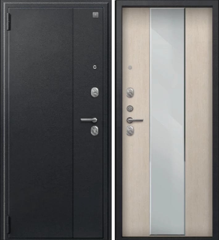 Надежная входная Дверь A-04 черный сатин - седой дуб зеркало премиум класса по цене 33 907 руб. Большая толщина стали защитит от проникновения в ваш дом, квартиру или коттедж. Используется очень качественная фурнитура: замки, цилиндры, ручки, защелки. Покрытие и отделка двери изготовлено под внимательным контролем производителя. Дверь имеет долгий срок службы и гарантию.